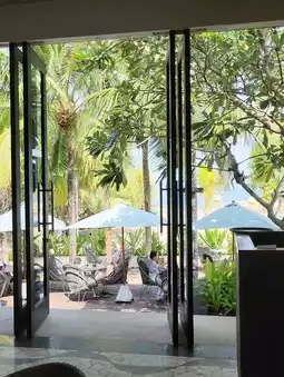 Taxis are readily available at the airport, and the ride to the resort only takes about 10 minutes, depending on traffic. The fare is typically between IDR 50,000 – IDR 65,000. Just make sure to choose a metered or official airport taxi for peace of mind.