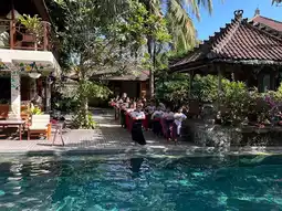 · The hotel has several restaurants and cafes nearby, including Naughty Nuri's Sanur and Mozza Sanur. Additionally, the hotel's open-air restaurant serves delicious dishes and cocktails, making for a delightful and memorable experience.