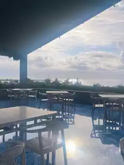 The pool is clean with few people, and you can see the streets of Bali and the sea! There’s a quirky fountain with water coming out of an animal’s mouth (lol)