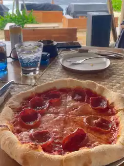The music is relaxed and chill, there are few people, and the staff are kind—just perfect♡ The drinks and pepperoni pizza here are delicious, so I keep coming back🍕 The pizza looks simple but has a chewy crust and rich cheese!! I’m the type who wants seconds of things I like😂