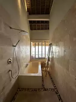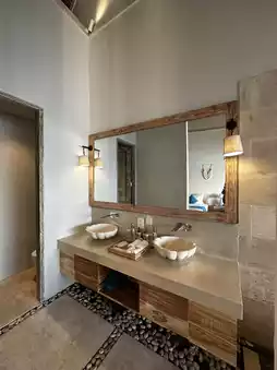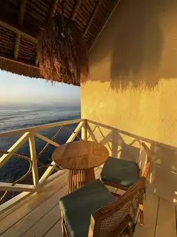 The rooms are also very satisfying. Sunshine pours onto the balcony, giving off a strong Greek vibe, with the white walls and blue sky creating a refreshing and uplifting scene. The bathroom design is also thoughtfully done, with stone slabs laid under the shower area, adding a natural “wild” feel. Showering here feels like merging with nature, very relaxing and pleasant.