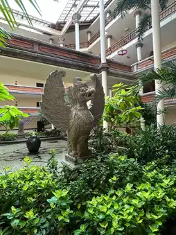 Ayodya Resort Bali is located in Nusa Dua, Bali, offering a serene and very safe environment. The hotel is famous for its grand Indonesian-style architecture and exquisite traditional decorations, making you feel like you are in a palace. The lobby is on the third floor, giving a noble impression, while the hotel facilities are spread across the lower floors. The restaurant is near a beautiful pool, allowing you to enjoy breakfast close to nature—a truly unique experience.