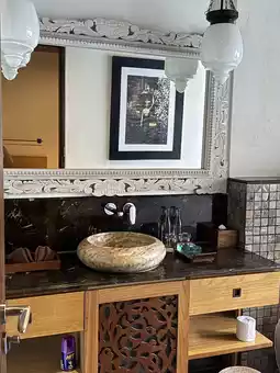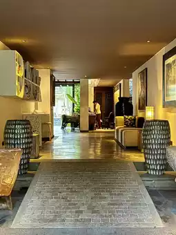 The interior features reliefs everywhere, giving a strong Balinese feel.