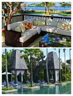 🏨 One of the highlights of the resort is its unique architectural style, perfectly blending Bali's traditional culture with modern luxury, making you feel as if you are in a dreamlike world.🏛️ Moreover, the resort is shaded by lush trees and filled with the fragrance of flowers, with every corner exuding a natural and harmonious vibe.🌳