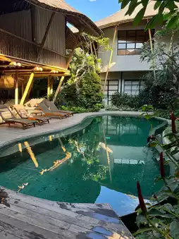 Canggu Sins Villa Resort is located in the Canggu area of Bali, surrounded by lush greenery and tropical scenery. The resort has a unique design and style, exuding a strong atmosphere of traditional Balinese culture. Each villa is independent and private, making you feel like you are in a quiet paradise. Mainly made of wood, with local decorations, it reflects the combination of simplicity and nature. The quiet poolside and swaying coconut trees make every corner of the resort comfortable and elegant, making you linger.