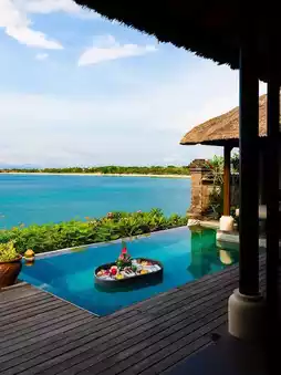 • The villas are all with infinity pools, and the floating meal is very out of the film