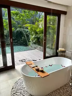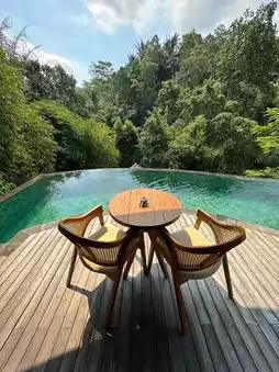 Although it’s a bit far from Ubud town, the surrounding natural scenery is truly unparalleled. The Tegallalang Rice Terraces near the hotel are a must-visit; it’s recommended to go early in the morning to avoid the crowds. Also, there are some great restaurants nearby, such as Tepi Sawah Waroeng, where the food and views are excellent and definitely worth trying.