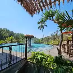 - D'tukad Coffee Club Bali: Much more relaxed than the crowded Cretya, you can enjoy the green rice field view and swim without a minimum charge.