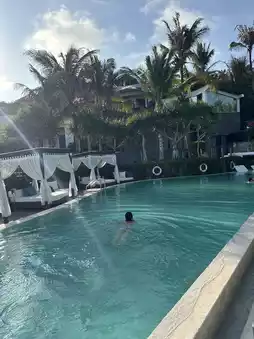 It’s not crowded, so you can enjoy it comfortably. It’s not very large, but the Bali vibe and Uluwatu view are stunning, making it a satisfying spot!
