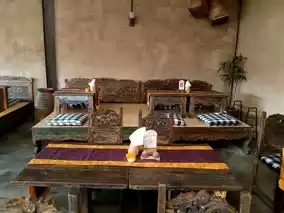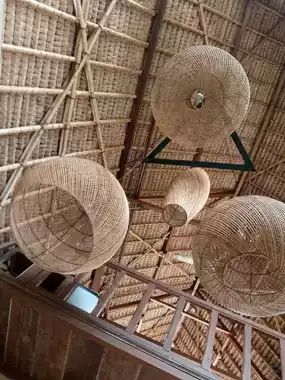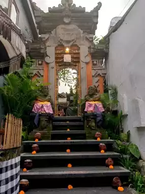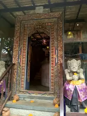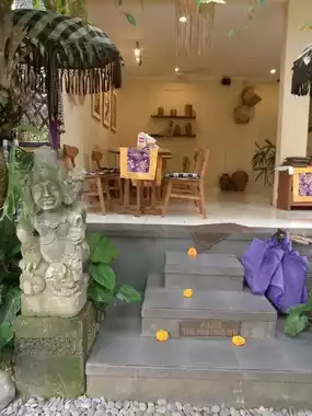 Perhaps the word 'warung' (Indonesian for "small cafe/eatery") would be a misnomer for this Ubudian restaurant, due to the spaciousness of its interior befitting a Balinese palace. Despite its central location on Ubud main street, its expansive interior remains a secret until one walks into it, for its resplendent façades are no giveaways to this fact. It has two entrances, three storeys, antique wooden furniture, a sprawling outdoor seating area, two kitchens and two bars, adobe walls decorated with framed paintings, and high thatched ceilings and roofs. Its menu offers a good array of Balinese dishes and drinks - including the warung's renowned 'Nasi Campur Langit' which means 'Mixed Rice from the Sky', blue rice, infused with 'eagle flower' and served with a round of Balinese traditional side dishes served in a wicker basket, lined with banana leaves. Also a specialty of this restaurant is the pay as you wish 'arak' dispenser booth, where you could get a taste of this delectable Balinese liquor. Whether you are looking for a cultural experience, a bite to eat, a drop to drink and/or all of the above in Ubud, Sun-sun Warung definitely tops the list.