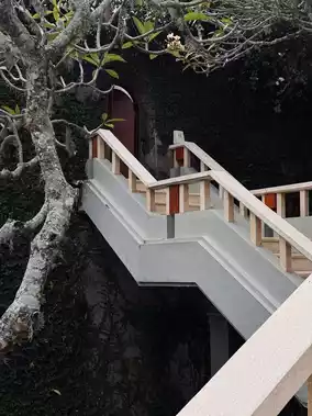In terms of design, the hotel uses a direct elevated structure approach, ignoring the terrain’s influence. This reduces damage to the landscape but does not follow the terrain as Geoffrey Bawa would, who designs in harmony with the land. A major planning flaw is the poor privacy of the rooms; many rooms can be seen directly from the corridors, a mistake unacceptable at this price level.