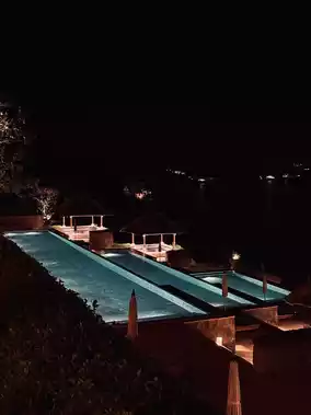 Designed by Ed Tuttle, Amankila opened in 1992 and is the second Aman hotel on Bali. The hotel is built on a cliff by the coast, with a total of 34 rooms. Facilities include four swimming pools, a bar, and nominally three restaurants, although the Indonesian and Western restaurants actually share the same space.