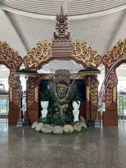 The interior decoration of the airport is very beautiful, featuring Balinese architectural style. As you walk through, you will see statues resembling lions and decorative pillars with woven patterns, paintings, and various handicrafts that reflect the city’s ancient civilization, which is a unique characteristic of Bali. Art lovers will enjoy the artwork inside the airport.