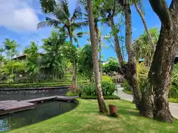 The grounds of Conrad Bali are very expansive, featuring beautiful gardens that blend harmoniously with the surrounding nature. The resort is planted with colorful flowers and lush trees, making a simple walk a soothing experience. There are numerous paths throughout the gardens, allowing you to leisurely enjoy Bali’s natural environment. The gardens are impeccably maintained, offering beautiful scenery wherever you look, making it an ideal spot for photography.