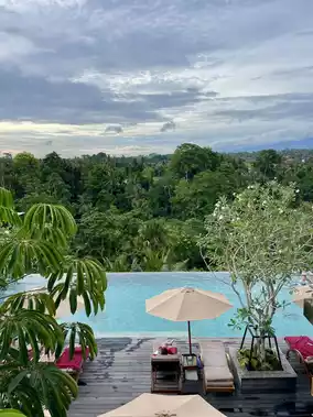 One of the most charming things about Bali is being able to see one of the most beautiful sunsets in the world. Staying at Adiwana Bisma, I unexpectedly discovered this is the best hotel in Ubud to watch the sunset 🧡 The hotel is very close to the city center, and there are many restaurants and shops nearby, making it very convenient! We stayed in a more affordable room type, but the room was larger than expected. I especially liked how they preserved traditional Balinese features, and the room had many designs that created an atmosphere filled with the sounds of birds and the fragrance of flowers! The pool facing the forest is my favorite spot, where you can enjoy the intoxicating view at sunset. Don’t miss it 🥰
