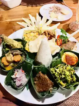 The restaurant highlights traditional Balinese cuisine, with its signature Nasi Campur being a must-try dish. Featuring a delightful assortment of authentic flavors, it’s a true taste of Bali that shouldn’t be missed.
