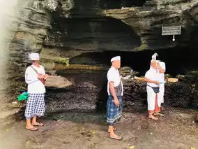 You can pray in the cave where a sacred spring wells up, and also touch the snake believed to be the guardian deity of Tanah Lot Temple
