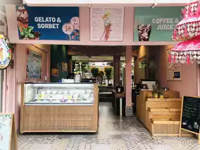 The organic gelato shop "GOURMET GELATO" in the parking area was delicious