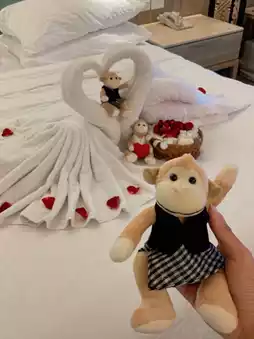 Located in the Nusa Dua area, the five-star Conrad Bali hotel boasts a truly prime location. Within less than a minute’s walk from the expansive hotel grounds, you can reach the beach and various beachfront pools, ensuring every guest has their own spot to enjoy the pool facilities! 😍 My boyfriend brought me here to celebrate our anniversary, and as soon as we entered the room, we saw towel swans and rose petals, along with the adorable monkey plush exclusive to Conrad Bali—such a wonderful surprise 🌹 In the evening, we had a sumptuous seafood dinner at the hotel’s seaside restaurant; the lobster was large and fresh, a must-try!