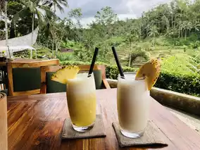 A stylish bamboo-built cafe where you can dine overlooking the Tegallalang Rice Terraces