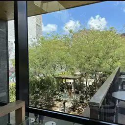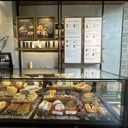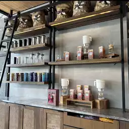 The store is spacious inside, and there are seats where you can watch your coffee being made right in front of you.