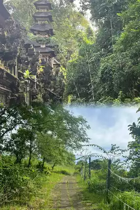4️⃣ Pura Gunung Lebah: This is the Hindu temple at the entrance of the hiking trail. Although it’s not open to the public, just watching from the gate with morning light shining on the temple creates a strong sense of mystery.