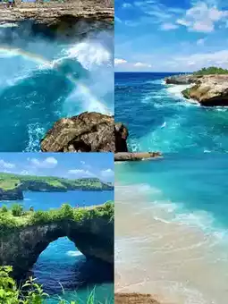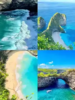 📍 Kelingking Beach: Famous for its towering cliffs and beautiful beach, one of the island's most iconic spots