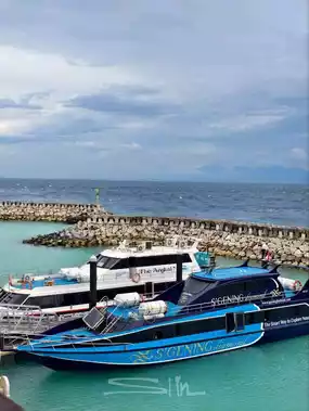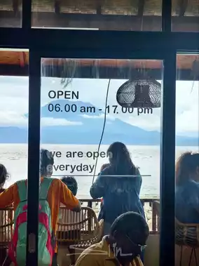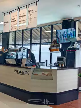 It's a cafe located at the Nusa Penida pier. A small shop with a main view area to sit and relax while drinking coffee as you wait for the boat back to Bali. "Piramide" offers both hot and cold drinks and delicious baked goods. Behind the shop is an open seating area with a stunning view of Mount Agung volcano standing tall in the background, making the wait for the boat no longer boring. If you have the chance, stop by and try it.