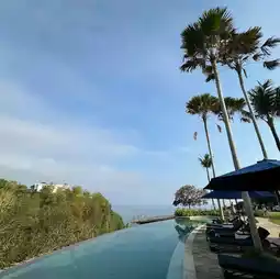 The Ungasan Clifftop Resort is a secluded luxury haven perched high above the turquoise waters of the Bukit Peninsula. This exclusive resort offers a limited number of private villas, each boasting infinity pools, spacious outdoor living areas, and panoramic ocean views. With dedicated personal butlers, every aspect of the guest experience is tailored and intuitive. What truly sets The Ungasan apart is access to the famed Sundays Beach Club—one of Bali’s most picturesque beachfront venues offering gourmet food, water sports, and fireside lounging under the stars. The resort is ideal for both intimate escapes and group celebrations, with many villas designed to host families or small events. Dining is exceptional, led by Australian chef James Viles, known for his farm-to-table philosophy. The vibe is laid-back luxury—polished but never pretentious. For travelers seeking space, privacy, and cliffside grandeur, The Ungasan delivers a dreamlike Balinese escape with cinematic beauty and heartfelt service.