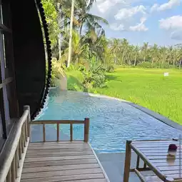 Nestled among lush rice paddies, Adiwana Bee House is a boutique wellness retreat unlike any other in Ubud. Its distinctive architecture features beehive-shaped villas that offer privacy and a sense of whimsical charm. The ambiance is serene, with an infinity pool that overlooks endless green landscapes and daily yoga sessions in an open-air pavilion. Rooms are thoughtfully designed with eco-conscious materials and feature private terraces, soaking tubs, and earthy tones. The on-site restaurant serves nourishing Balinese and Western dishes, with many ingredients sourced from local farms. Personalized wellness experiences—like Balinese massages, flower baths, and guided meditation—are at the heart of the stay. It’s an ideal retreat for solo travelers, couples, or anyone seeking a peaceful recharge. Despite its secluded feel, it's just minutes from central Ubud. Adiwana Bee House strikes a perfect balance between uniqueness, tranquility, and mindful luxury.