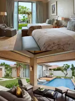 The villa rooms are spacious with clean and tidy bedding. They clean twice a day. The small pool is also very clean. There is a round bathtub indoors where you can ask the staff in advance to prepare a bubble bath. The staff are enthusiastic and patient, with each villa equipped with two butlers. The hotel’s spa is quite good and well-known on the island. Overall, the service level is outstanding among established hotels. Perfect for families with kids!