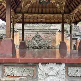 Ubud Palace is a showcase of classic Balinese design — volcanic stone carvings, intricate floral and mythological reliefs from Hindu epics like the Ramayana and Mahabharata, and beautifully tiered gates. It’s compact, but every inch is photo-worthy!
