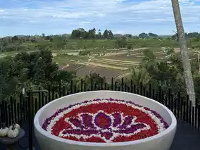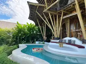 The villa comes with a private pool and jacuzzi, which were great for relaxing during the day. The bathroom is open-air, which adds to the natural experience, but the hot water runs out quite quickly, so it is best to shower without delay.
