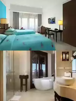 The rooms are clean and hygienic, the water quality for washing is good, and the bed and pillows have the perfect firmness for a comfortable sleep. The plugs brought from home can be used directly. The pool is divided into three areas and beautifully decorated. There is a private beach, which is regularly cleaned by dedicated staff to keep it tidy. Additionally, watching the sunrise here is very convenient.