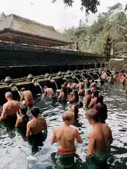 📍12:00-13:00 Tirta Empul Temple, the holy spring water. We really wanted to go here; if you make a wish, it will come true. There is a ceremony (If you have difficulty conceiving, come here). Entrance fee IDR 50,000 per person