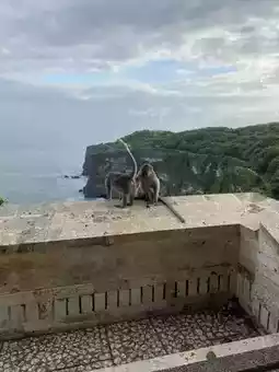 (The temple is very beautiful but the monkeys are very aggressive)