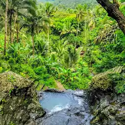 In the peaceful morning with no one around, relax at the waterfall and experience the natural pools.