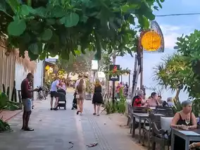 Around 5:30 AM, arrive at Sanur Beach in the dim light. The sun rising over the sea colors the sky like a watercolor painting, and along the long promenade by the shore, only the sound of bicycle wheels can be heard.