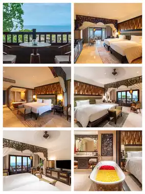 Standard Rooms (starting at 52㎡): One-bedroom ocean view villas, garden view rooms, and Jimbaran Bay rooms, featuring marble floors, handcrafted woodwork, and spa-style bathrooms. Some rooms offer priority access to the popular Rock Bar for social media moments.