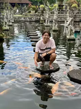 One of the most magical parts of Tirta Gangga is the large koi-filled ponds. As you walk across the iconic stepping stones, you’ll be surrounded by hundreds of colorful fish gracefully gliding through the water 🐠🎏. Visitors often bring fish food, making the ponds come alive with movement—perfect for both peaceful reflection and great photos.📸