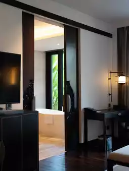 The room is about 80㎡ in size, offering a space you can't experience in Japan. The high-quality interior adorned with Balinese traditional crafts and the moments spent feeling the breeze on the terrace create a truly healing Balinese time✨