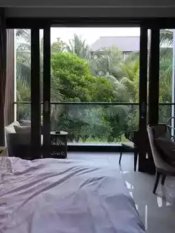Outside the window, a lush green courtyard spreads out, allowing you to relax while feeling the natural Balinese environment🌿