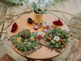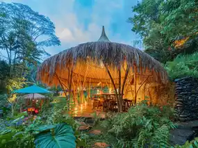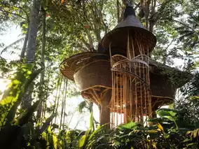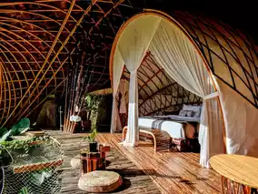 Every accommodation at Bambu Indah is handcrafted by local artisans, using bamboo, reclaimed wood, and natural stone as the main building materials.