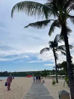 Geger Beach in Nusa Dua is a captivating spot that offers a perfect blend of tranquility and natural beauty. With its soft white sands and crystal-clear waters, it's ideal for swimming, sunbathing, and snorkeling. The beach is less crowded than many other tourist spots, providing a peaceful atmosphere where visitors can unwind and enjoy stunning views of the surrounding cliffs. Local food stalls add to the experience, offering delicious snacks and refreshing drinks. Overall, Geger Beach is a hidden gem that invites relaxation and enjoyment, making it a must-visit destination for anyone exploring Bali.