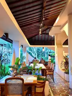 Cerita Manisan in Ubud is a cozy restaurant set in a traditional Javanese joglo, surrounded by peaceful rice fields. The vibe is calm and nostalgic, with soft music playing in the background.