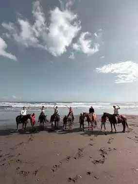 From riding through the fields to the beach, the entire ride is guided. Once we reach the beach, we get to ride on our own, which is really fun~