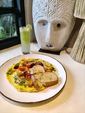 Breakfast was another highlight — beautifully presented, with healthy options and a unique Western fusion Indo dishes. The property itself is lush and calming, complete with a café, gym, massage parlour, co-working space, and retail shop.