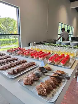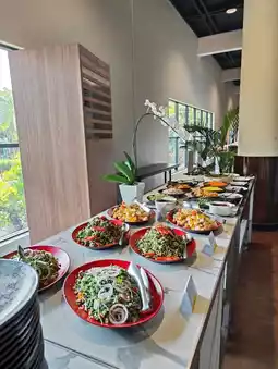The savory selections leaned proudly into Balinese culinary tradition. Richly spiced meats, vibrant sambals, and earthy vegetable dishes spoke of careful preparation and respect for local techniques. Dishes like ayam betutu (slow-cooked chicken with traditional spices) and lawar (a finely chopped mix of vegetables, coconut, and minced meat) delivered depth, balance, and that signature kick of heat that Bali does so well.