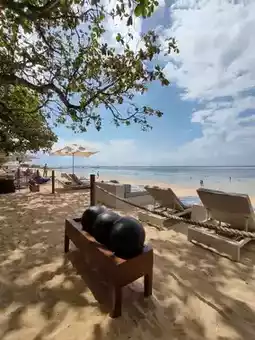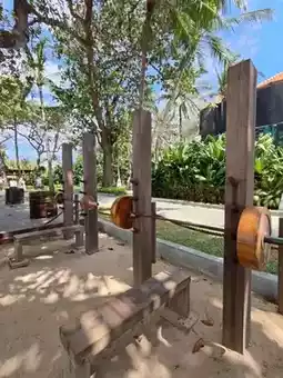 Thereās something surreal about bench-pressing solid teak with the ocean breeze tousling your hair and the sound of waves playing background beats to your grunts and reps. Welcome to the Beach Gymāa sun-drenched open-air workout wonder nestled right on the sands of Nusa Dua.