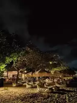 As twilight settled over the horizon, Ikan came alive with the gentle hum of tourists swapping stories over cocktails. The breeze from the Indian Ocean danced through the open space, infusing the air with salt and freshness. The rhythmic lull of waves added a natural soundtrack, while soft lighting and Balinese design touches created an ambiance that felt grounded yet elevated.